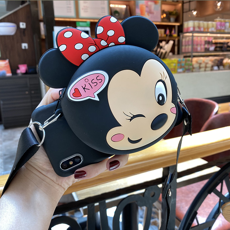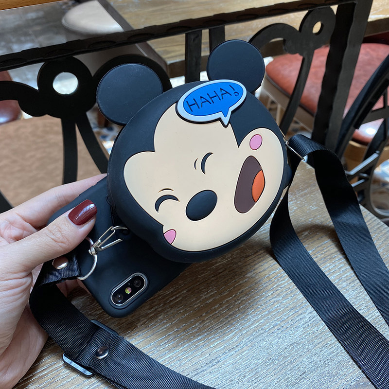One plus 7pro-black shell Kiss Minnie wallet pure black sloping hanging rope one plus 7pro-black shell HAHA Mickey wallet pure black cable-stayed with a 7-black shell