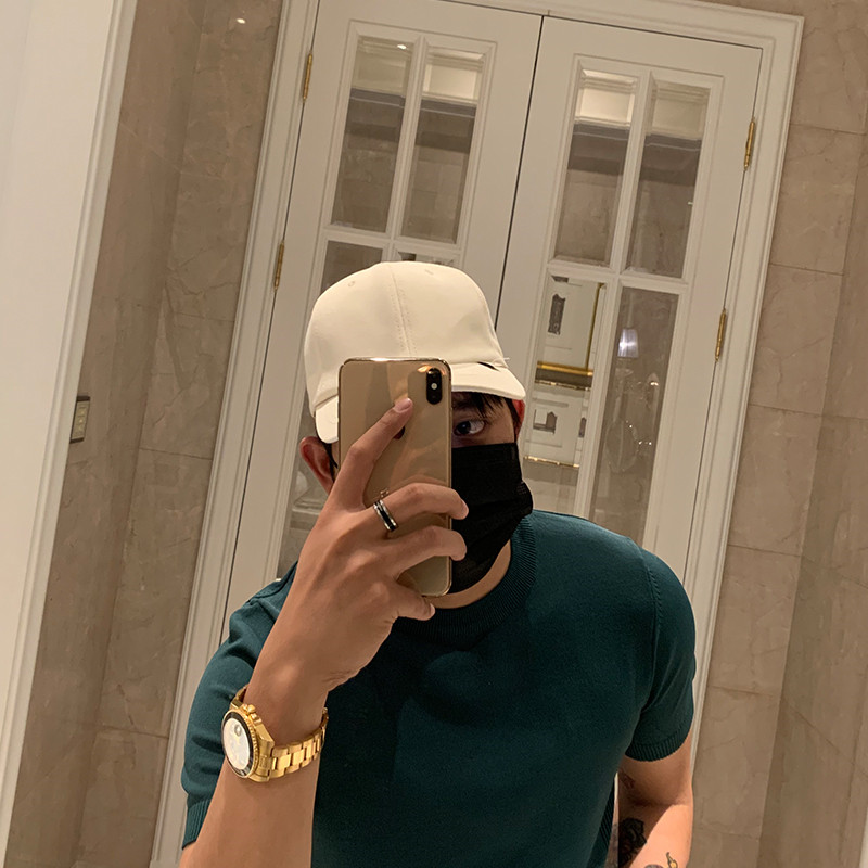 Summer ice wire short sleeve men with a slim wind elasticity to fit T - shirt 2022 Korea pure coloured cool T - shirt knitted half sleeve
