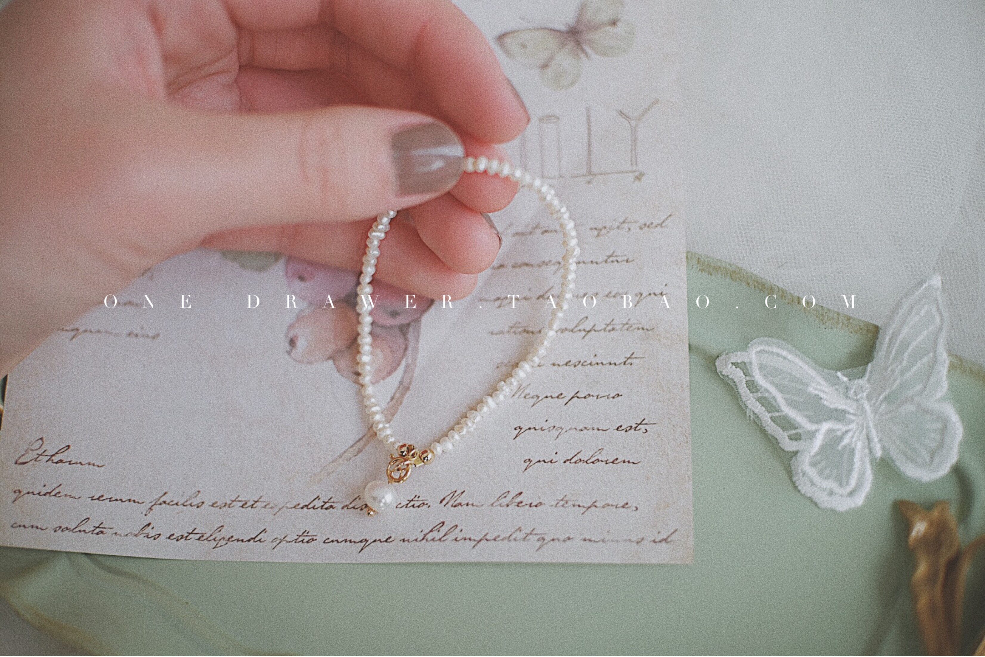 "One drawer" Everyday simple 14k gold ultra-fine freshwater mini natural shaped pearl bracelet accessories