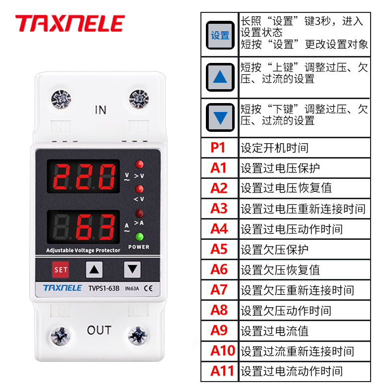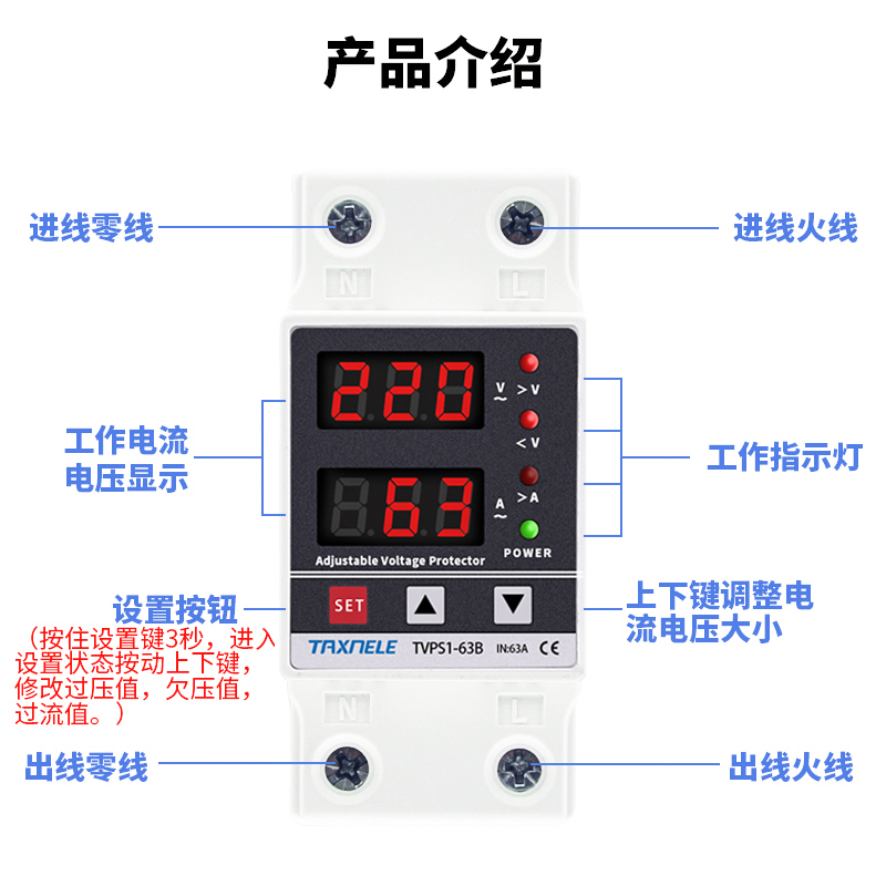 Self-duplex adjustable under-pressure limited flow protector 63A Number of display 220V Home switch overload overcurrent lightning protection