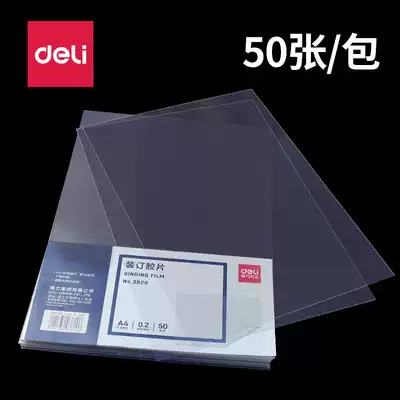 Deli A4 binding negatives 3820 perforated transparent binding loose-leaf cover Plastic cover cover PVC film cover cover thickness 0 2mm hard sheet 50 sheets plastic envelope transparent binding negatives