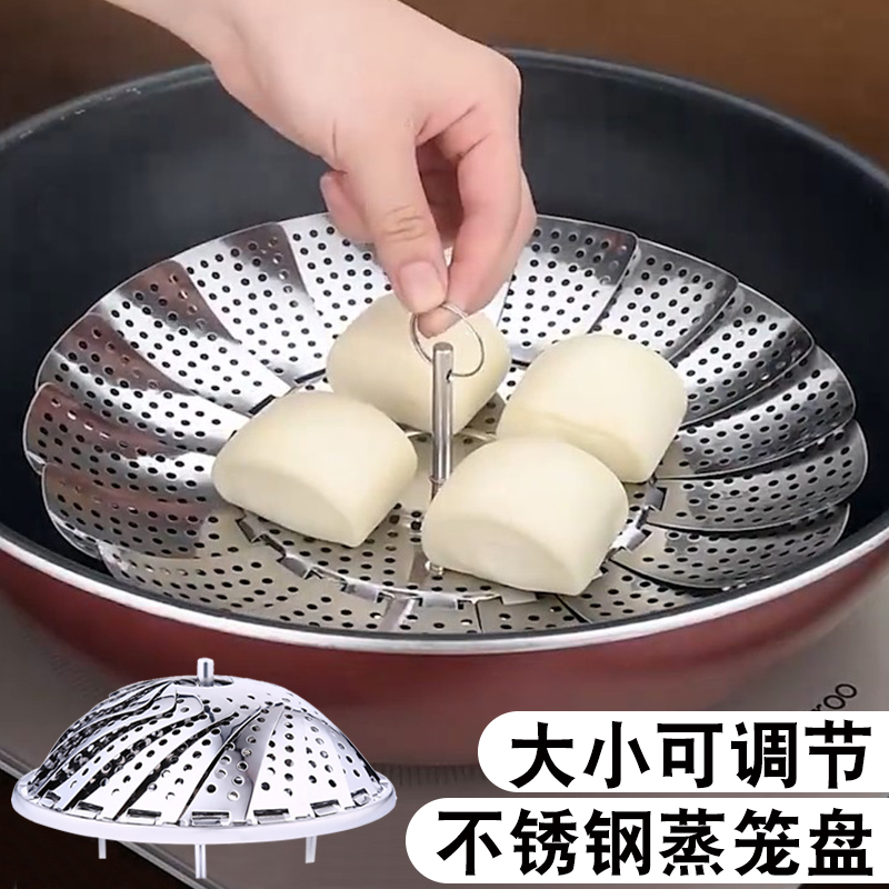 Creative Stainless Steel Grate Telescopic Steam Cage Home Steam Cage Small Steam Cage Bag Multifunction Folding Steam Tray Steaming Rack