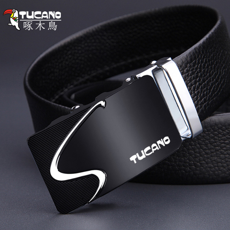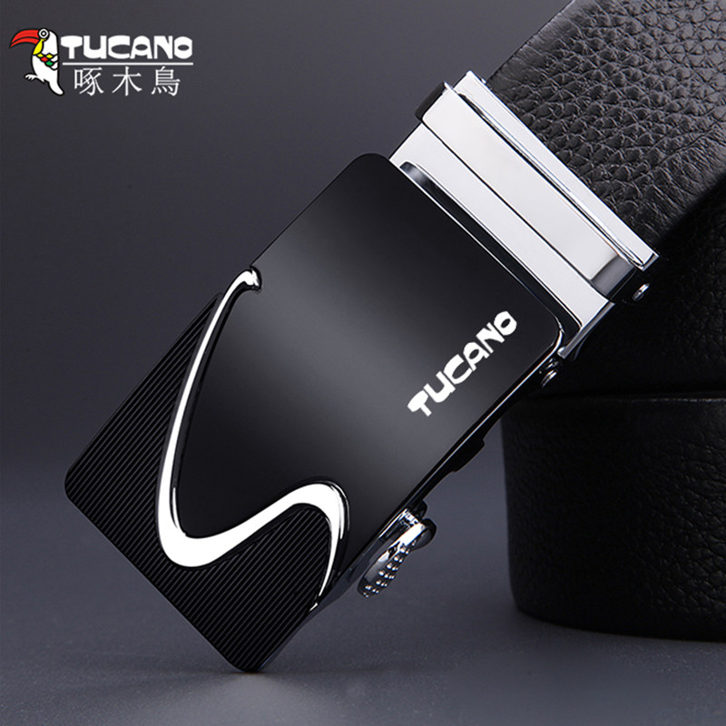 Woodpecker Men's Belt Trendy Leather Automatic Buckle Men's Pants Belt Buckle Head Gift Box Set Casual Leather Belt