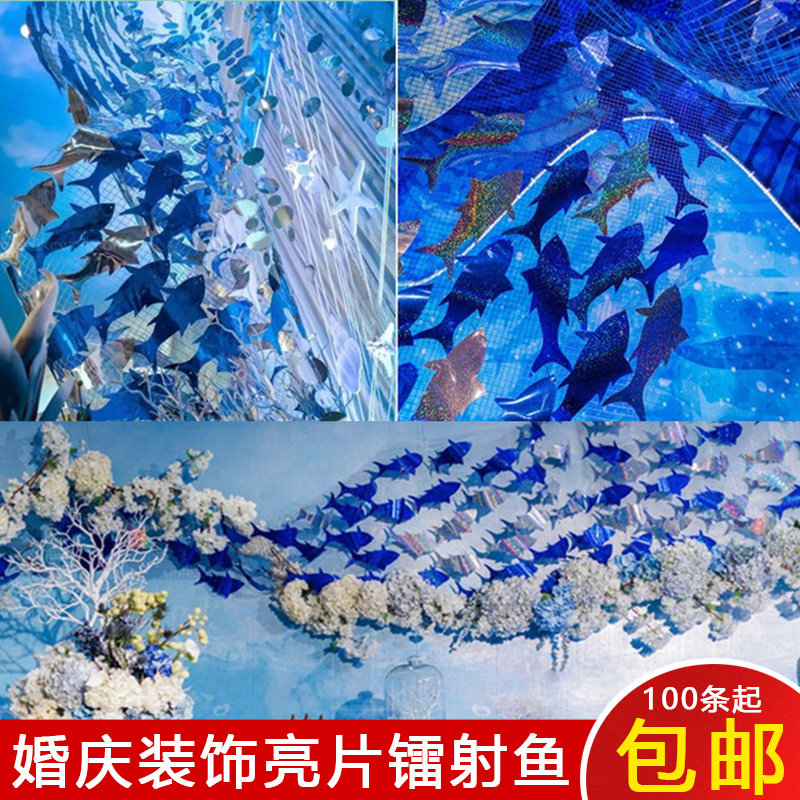 Wedding decoration ceiling sequin fish laser fish ocean theme wedding props shopping mall Meichen hanging decoration window decoration