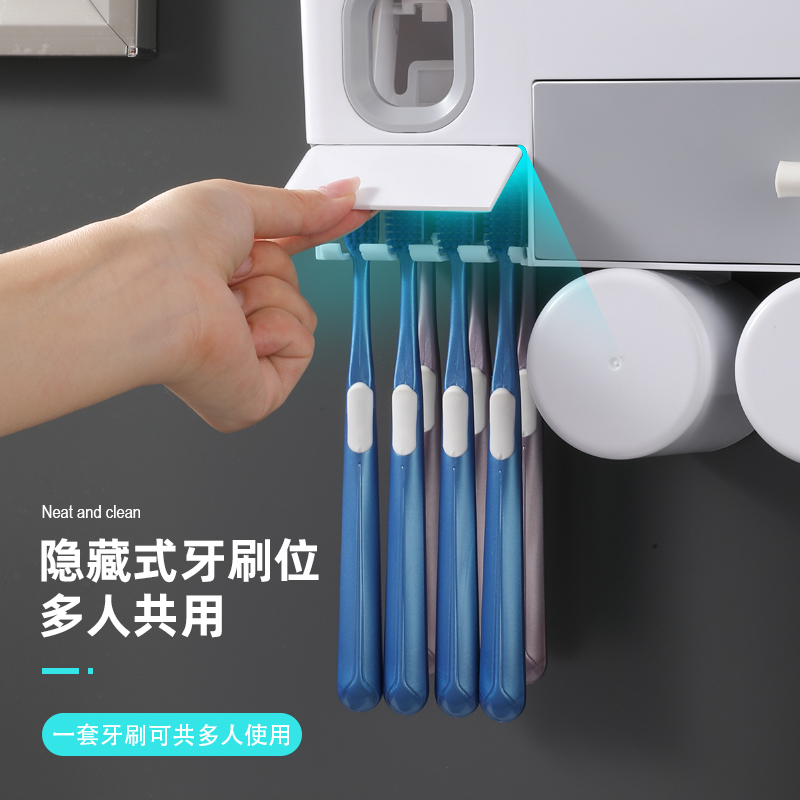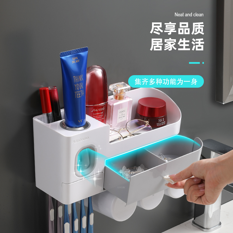Free Punching Double Toothbrushes Shelve With Makeup Room Bathroom Cups Toothpaste Wall-mounted Dust-Proof Wash-Face Milk Containing shelf