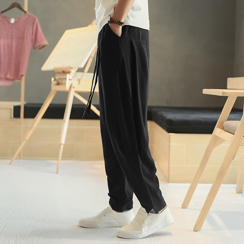 Tide brand it neith BIAS casual nine-point linen pants men's loose wide-leg bloomers cotton and linen pants all-match