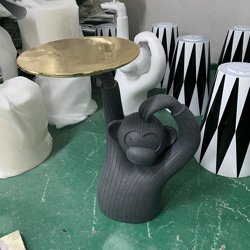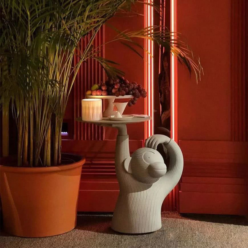 Boruisi Furniture Art Cute Doll Cement Monkey Coffee Table Table Sculpture Ornament Monkey Table