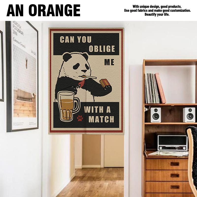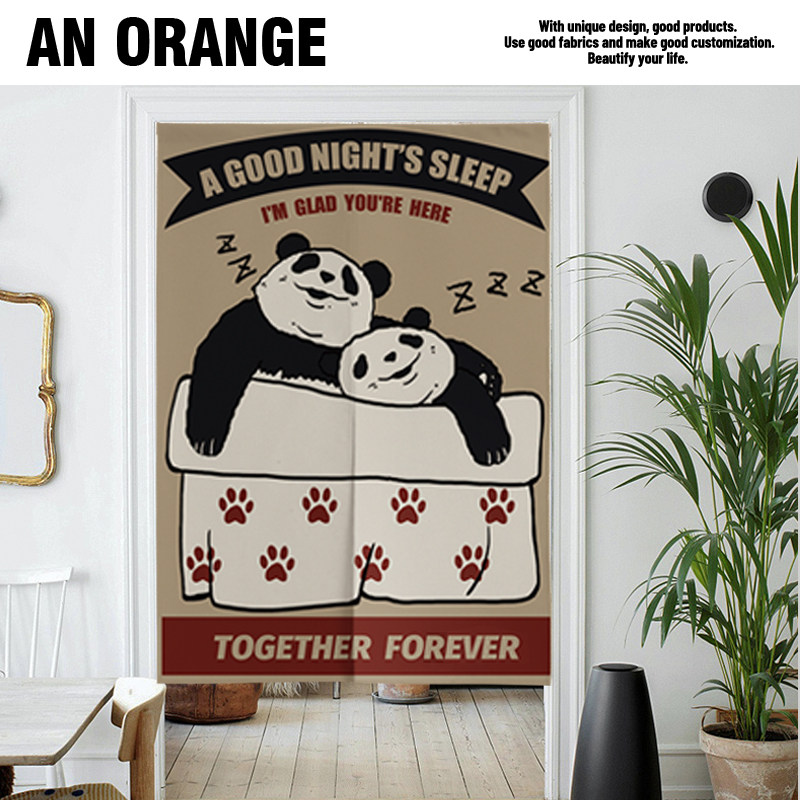 Cartoon Panda American Door Cord Fabric Door Curtain Cotton Linen half-curtain bedroom partition window toilet kitchen Decorative Curtains thick