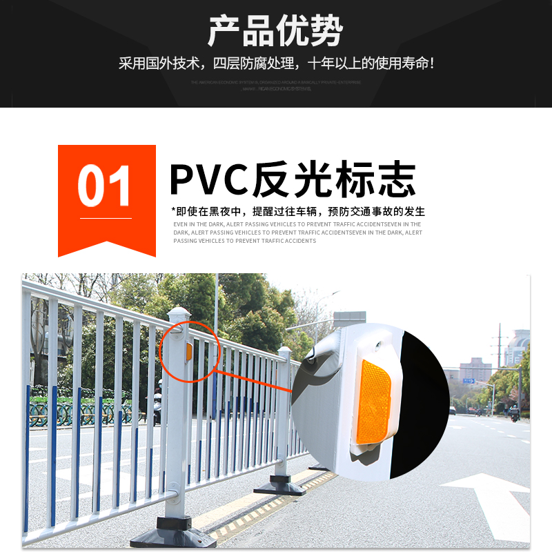 Gudu road guardrail Isolation fence City road sidewalk road guardrail hot dip galvanized steel traffic anti-collision railing