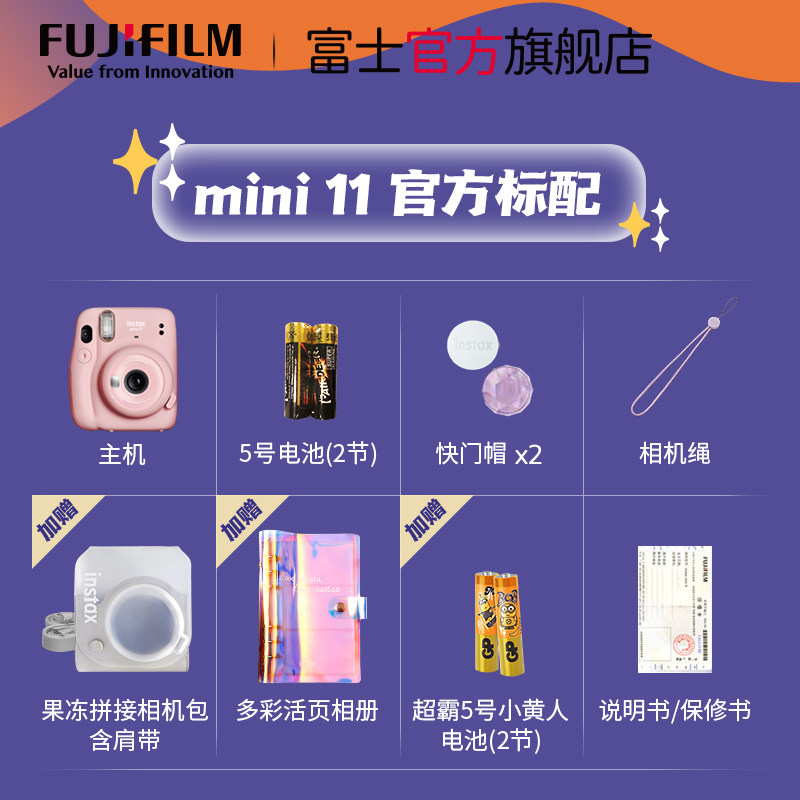 Official Standard (Package 1) Standard + Crystal Shell + Accessory Pack + Battery 2 (Package 2) Standard + Crystal Shell + Accessory Pack + Battery 2 + Photo Paper 10 Sheets (Package 3) Standard + Crystal Shell + Accessory Pack + Battery 20 Pieces (Package 4) Standard + Crystal Shell + Accessory Pack + Battery 2 Sections + Photo Paper 30 Sheets (Package 5) Standard + Crystal Shell + Accessory Pack + Battery 2 Sections + Photo Paper 50 Sheets (Package 6) Standard + Minion Peripheral Accessories Box