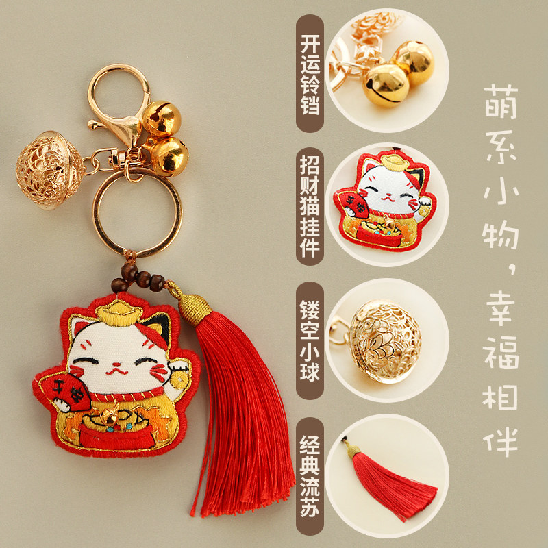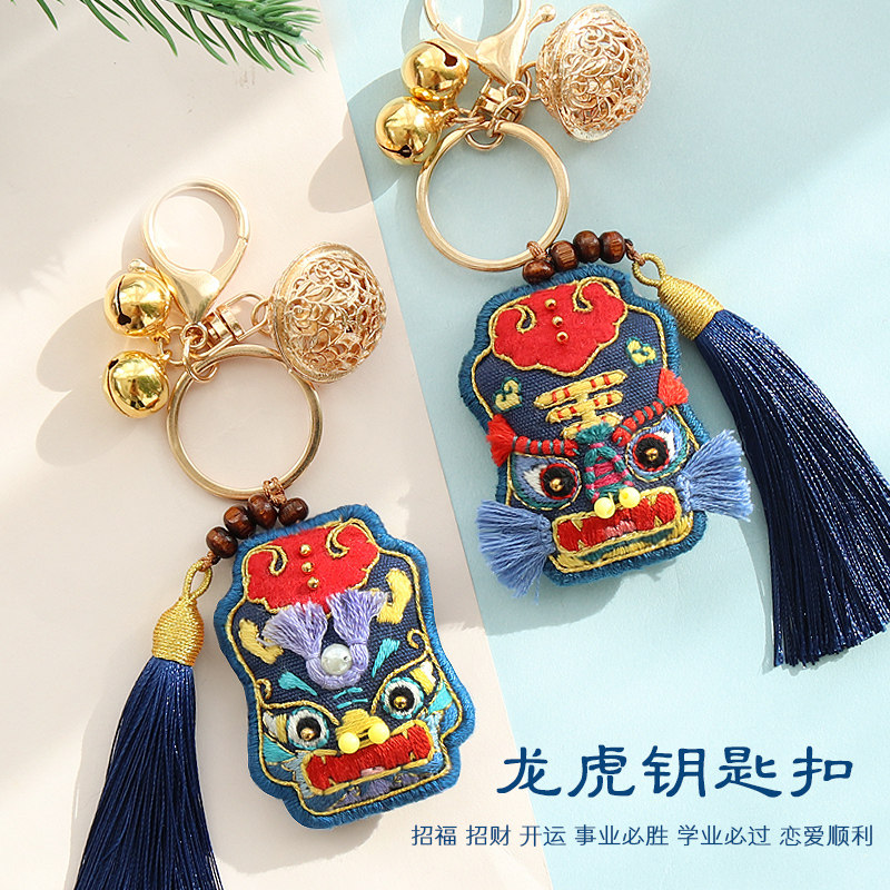 Hand embroidered diy material bag wake lion keychain cartoon peace charm scented bag couple pendant to boyfriend gift