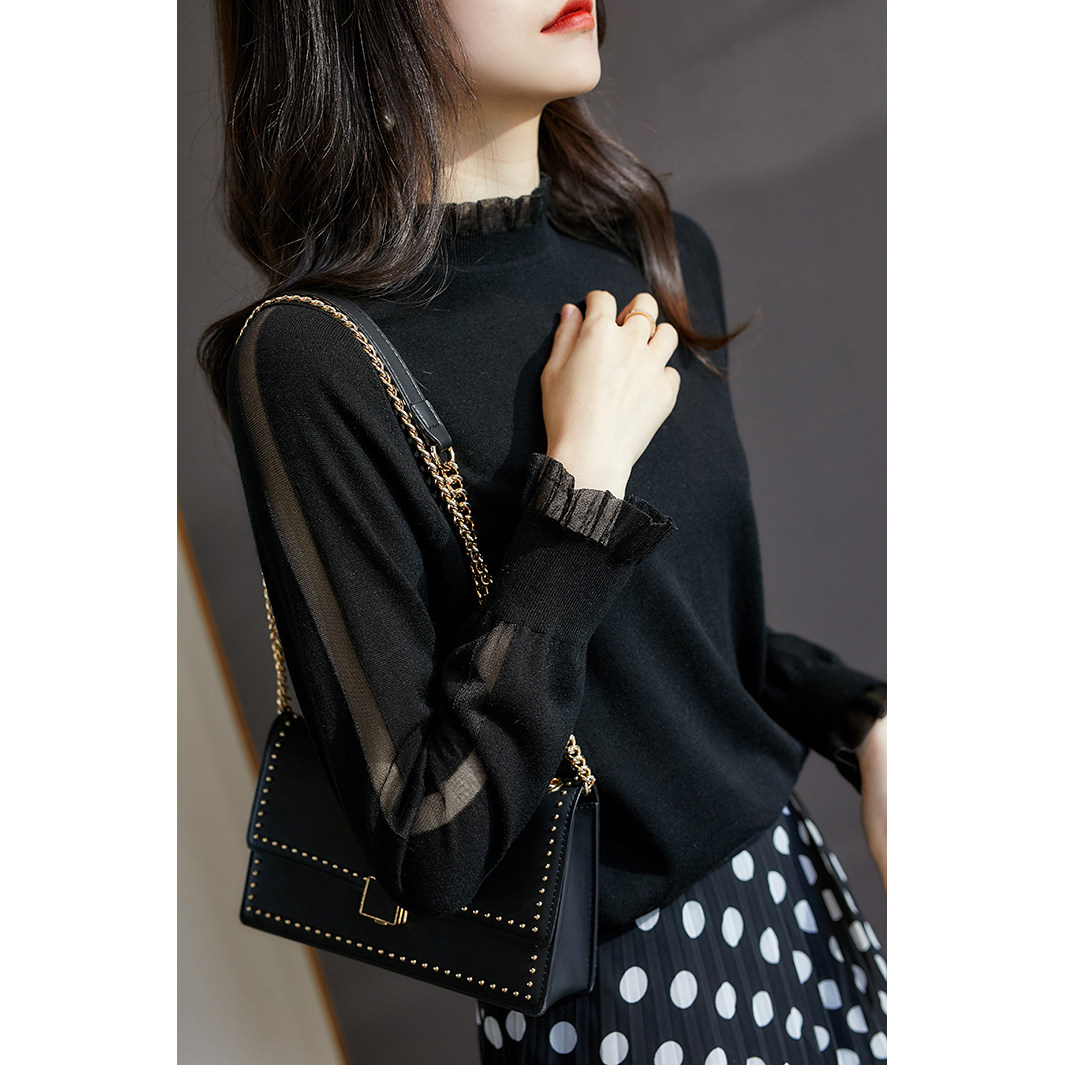 のElegant commuting temperament thin woman mesh fungus decorative knitted pullover EGZY33147