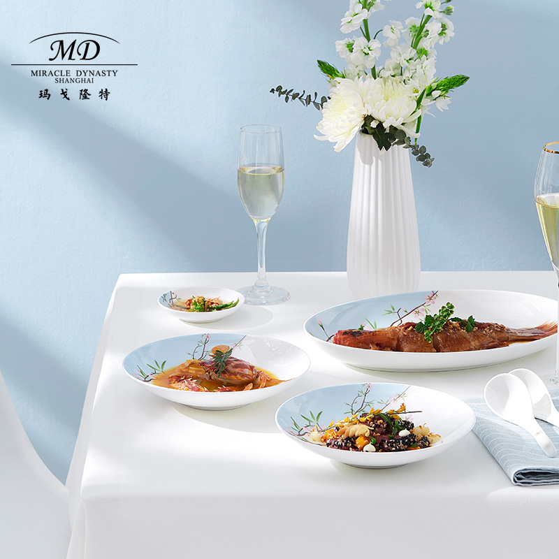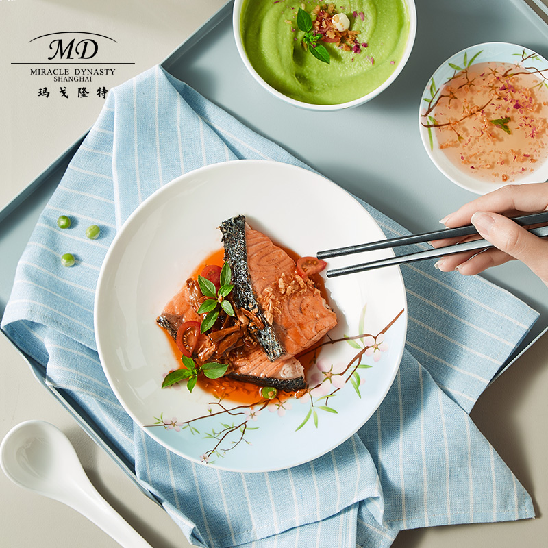 Margolonte Rain Flower Xuan Home Flat Pan Soup Dish Soup Bowl of Bubbling Noodles Bowl bowls Tableware Sets Single Modern Flowers
