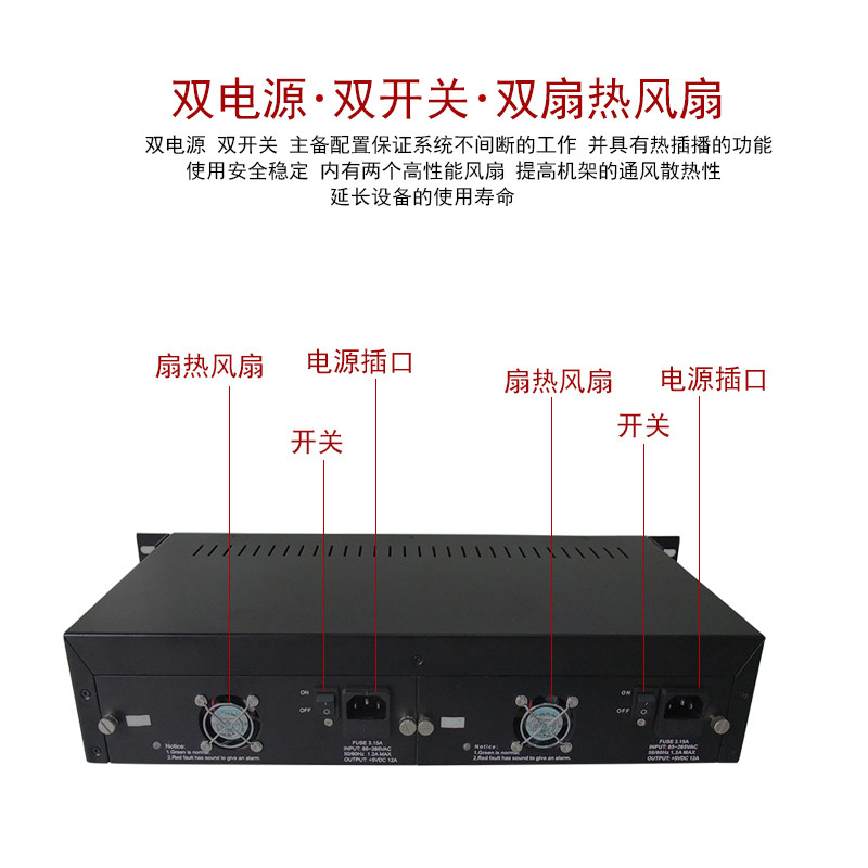 Telecom class 14 trough optical transmitter and receiver dual power supply film 19-inch 2U rack centralized power supply fiber transceiver