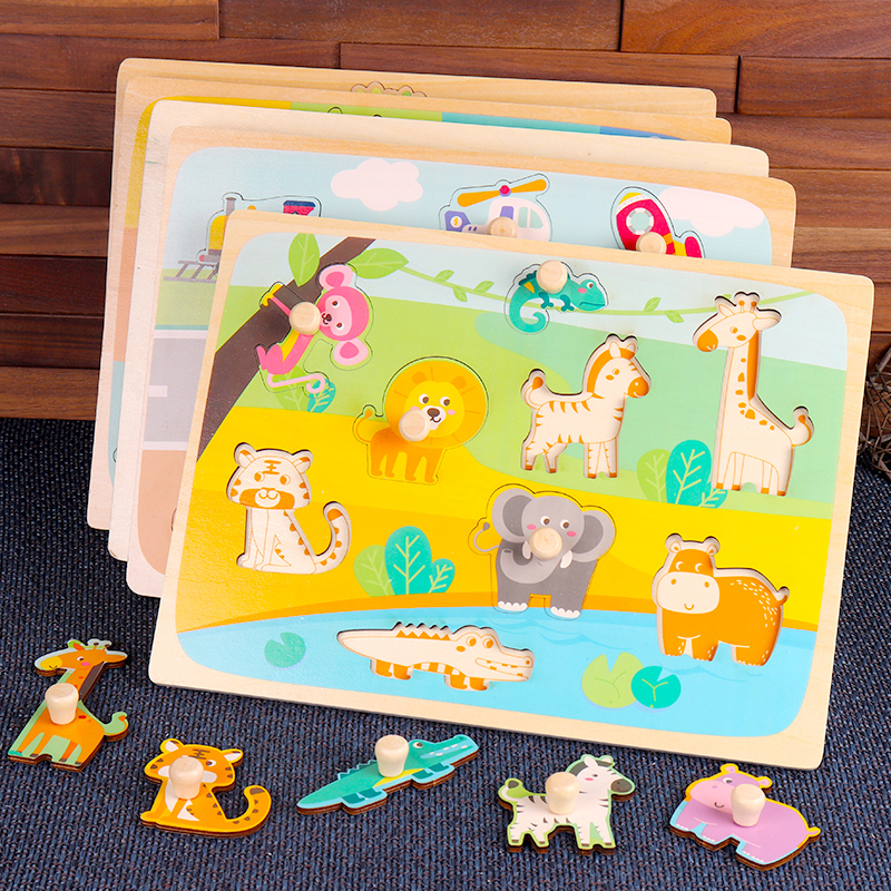 Child Shape Pairing Graphics Cognition Hand Grip Board Jigsaw Puzzle Insert 1-3-year-old baby Mont's early education Puzzle Toy