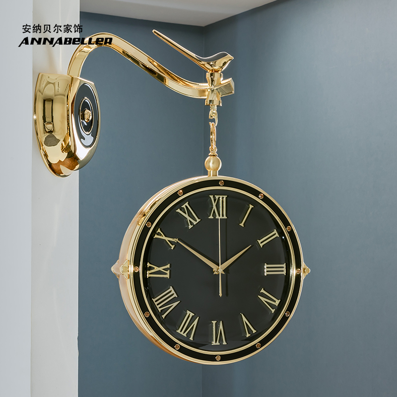 Light and luxurious double-sided hanging clock living room clocks and watches creative fashion home luxurious decoration hanging hanging bell clock clock atmospheric quartz clock