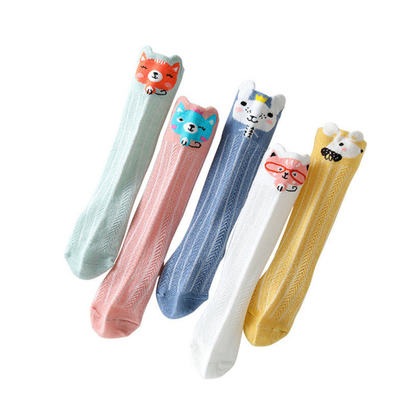 Spring, autumn and summer new baby baby 0-6-12 months 1-3 years old pure cotton mesh thin section cartoon anti-mosquito long high tube socks
