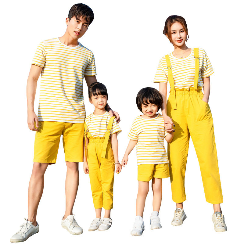 A family of four parent-child short-sleeved striped T-shirt two-piece set 2021 summer mother-daughter couple's clothing suit children's clothing