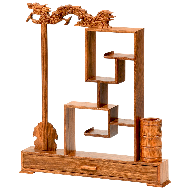 Solid Wood Bou Ancient Shelf Style Pen Hang Red Wood Brush Holder with drawer Multi-treasure cabinet Flower pear Wenfang Four Treasure pens Hanging Show Shelf