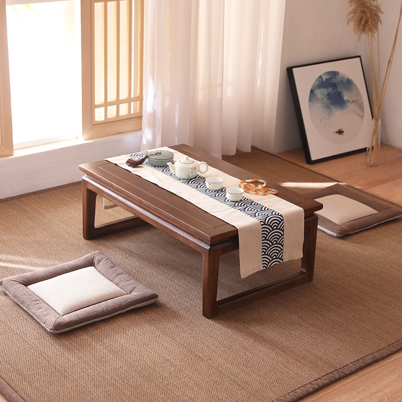 Tatami table solid wood Japanese style floating window small tea table simple Yeryu wood tea table pit table with Chinese style Zen Dwarf table