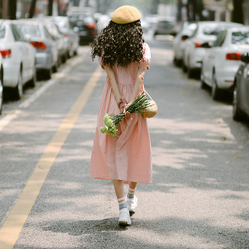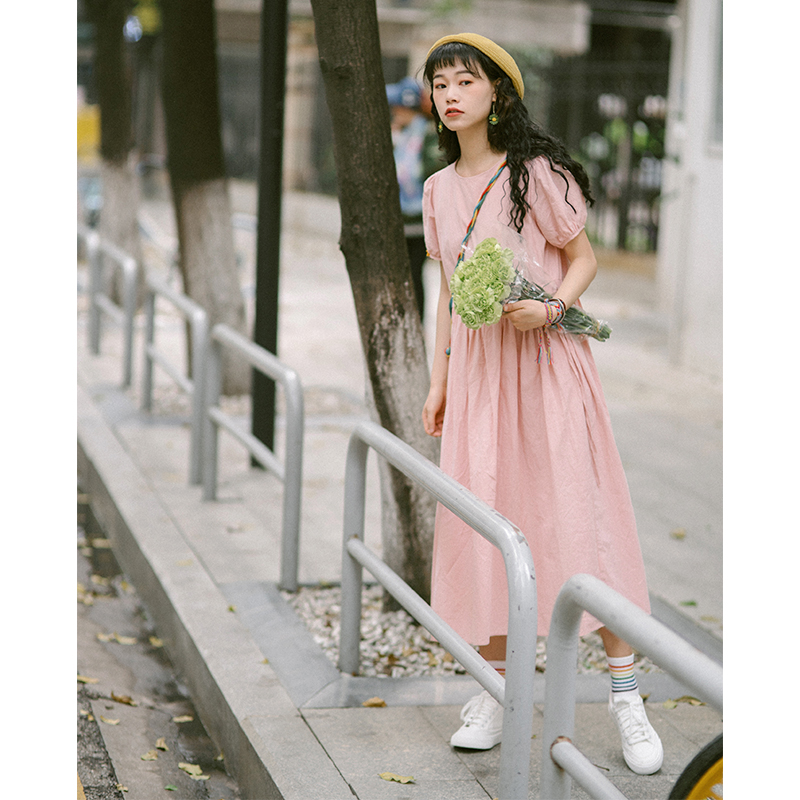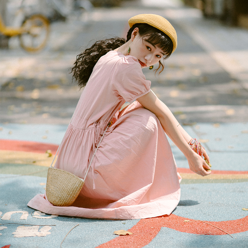 Summer girl dating dress Mid-length dress Small pink dress waist reduction French gentle girl skirt