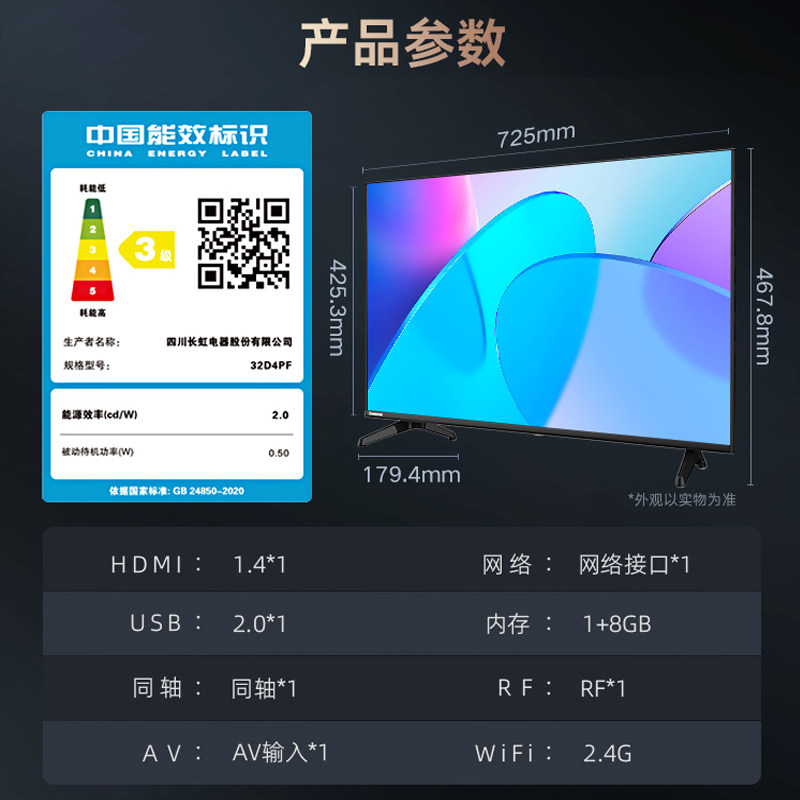 Changhong 32 D4PF 32-inch HD LCD screen TV Senior Bedroom Household Complete Screen TV 40