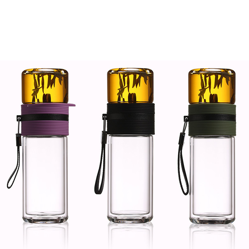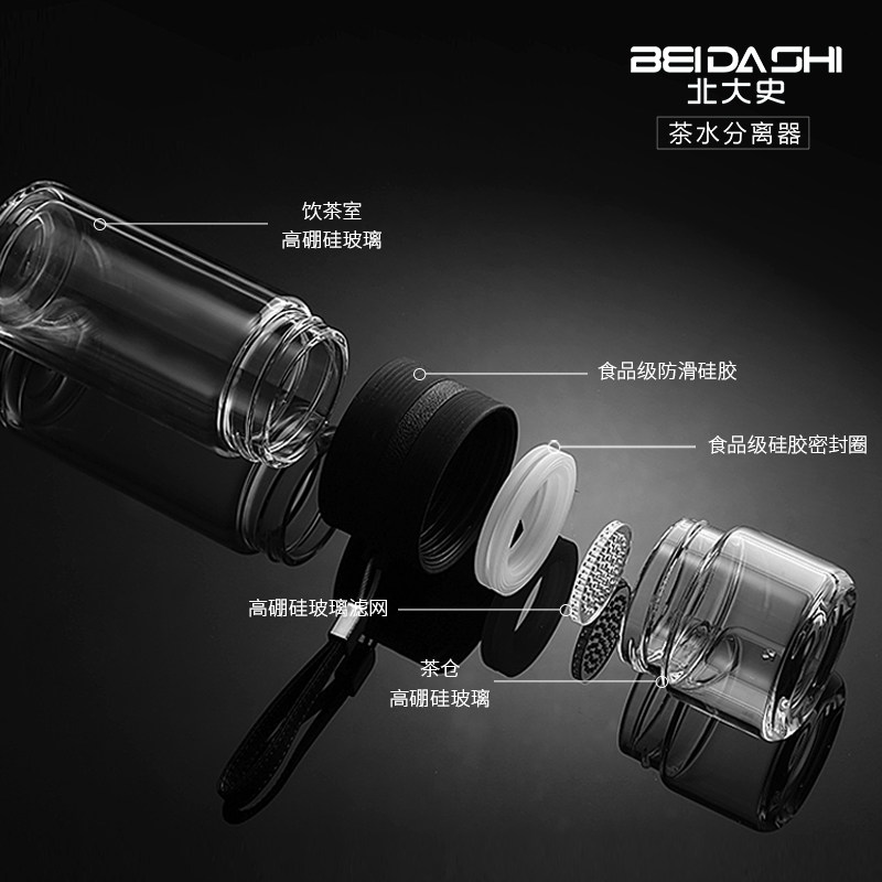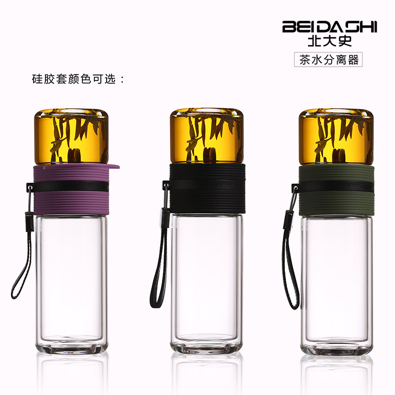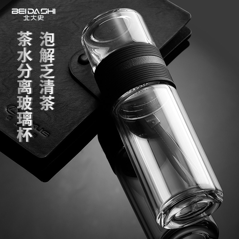 Peking University history glass transparent heat-resistant double-layer anti-scalding tea water separation car out portable multi-purpose tea cup