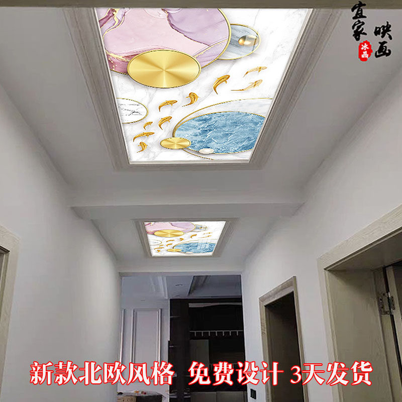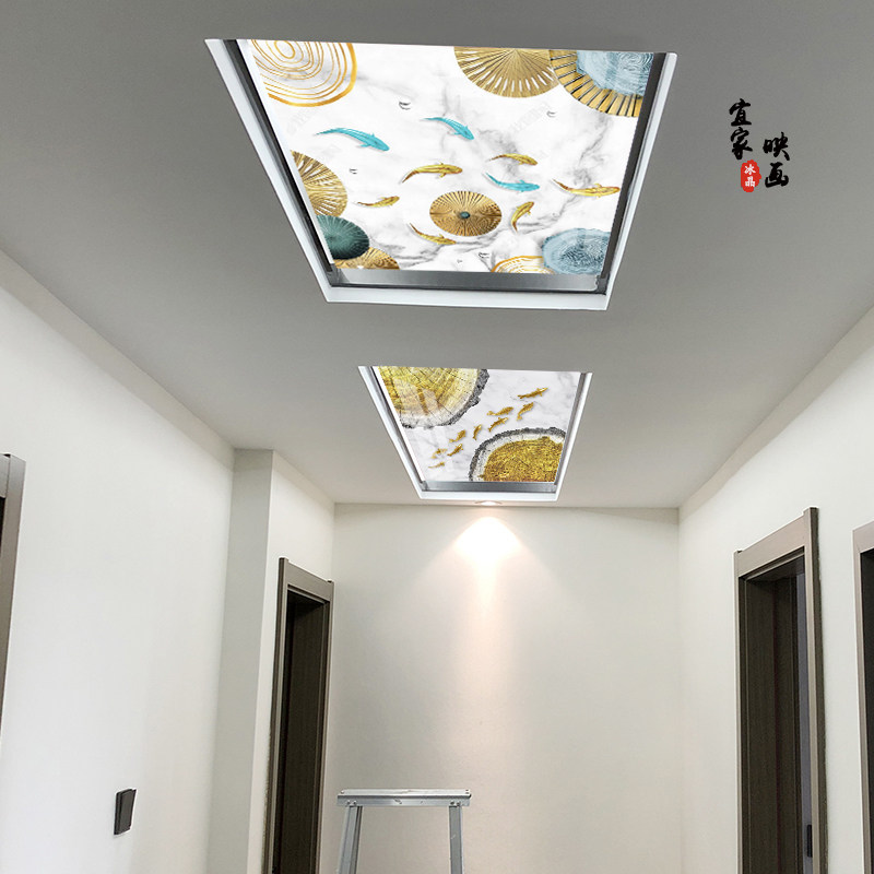 Light luxury Nordic geometric line art glass ceiling decoration aisle corridor living room translucent glass ceiling custom made