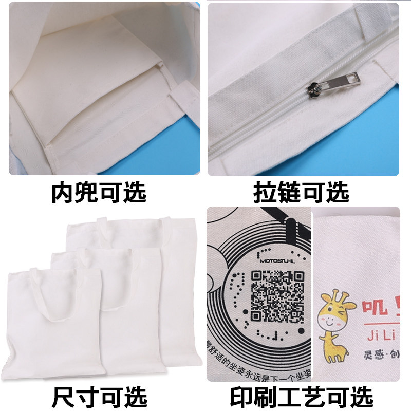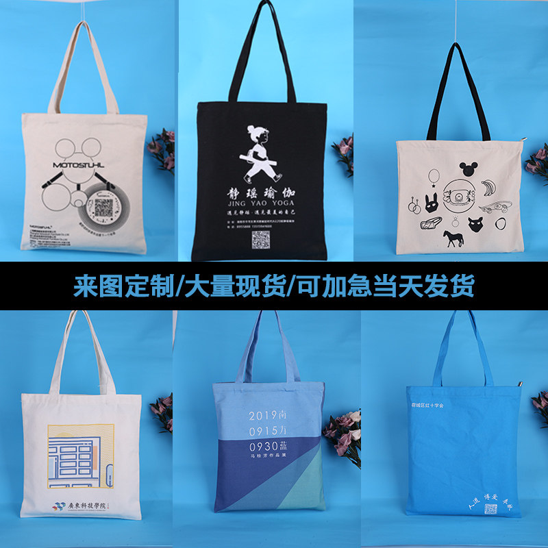 Canvas bag custom printed pattern Large capacity male and female students portable cotton bag with zipper custom canvas bag logo