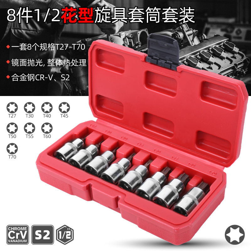 Sleeve batch head Inner hexagonal wrench flower-shaped spline sleeve t30t45t50 big fly spinner auto repair tool set