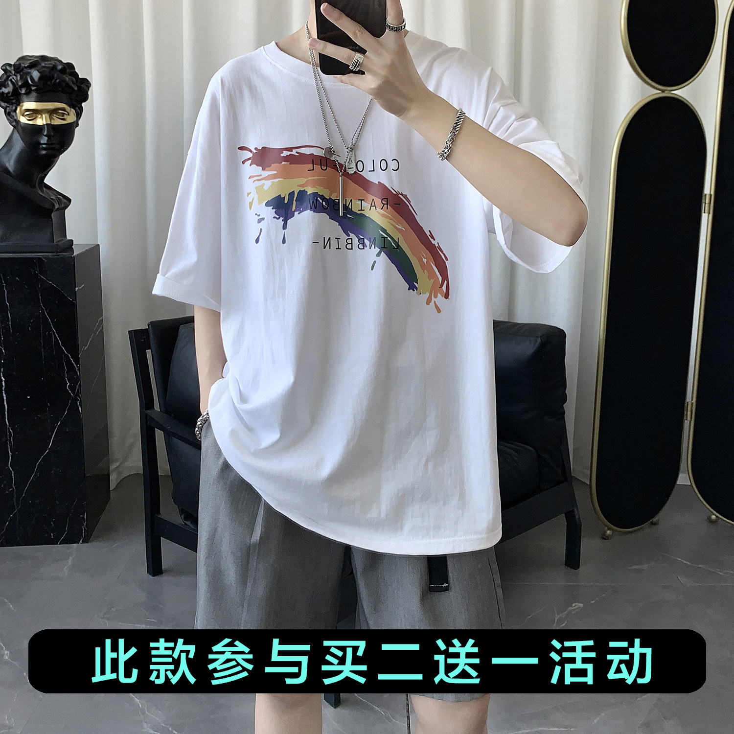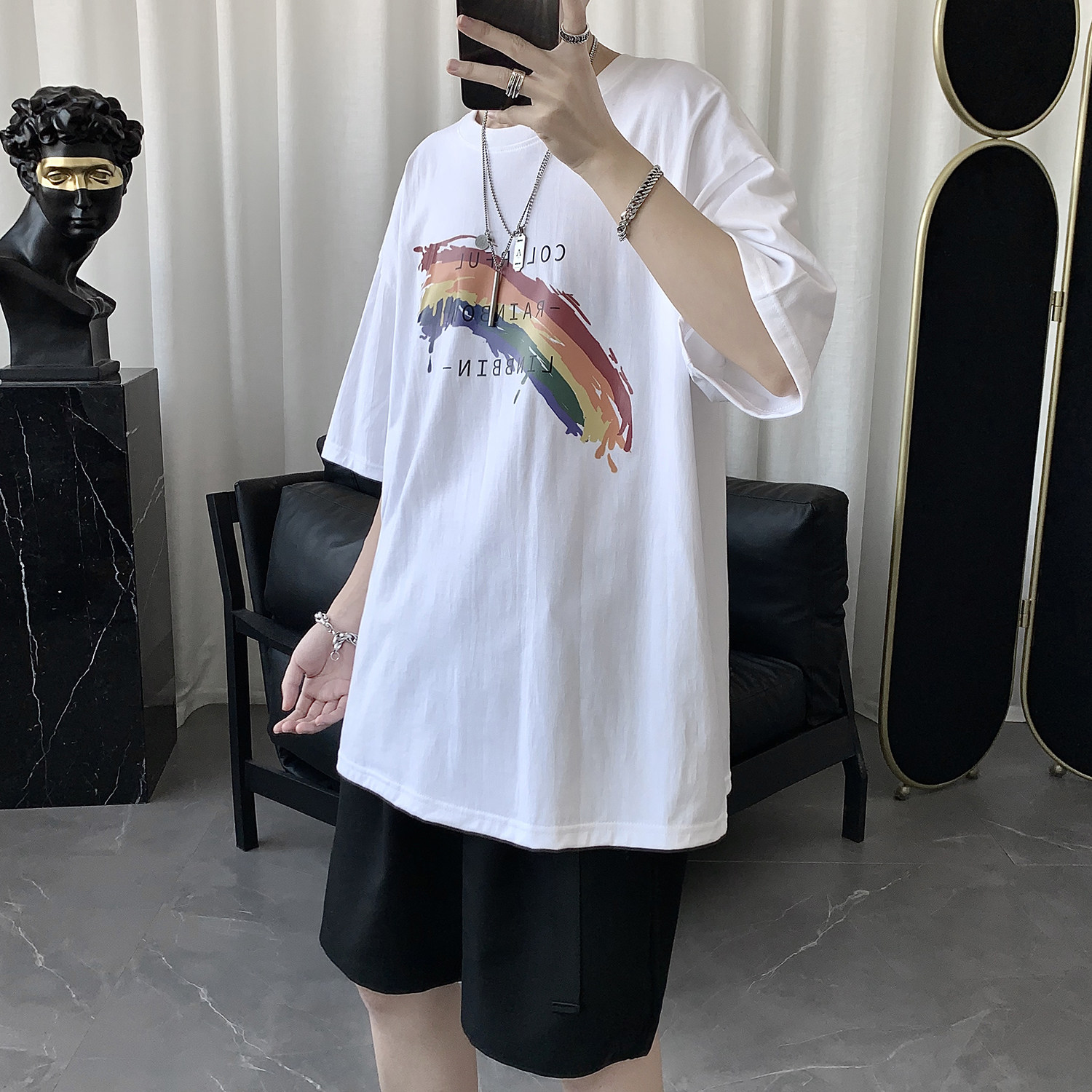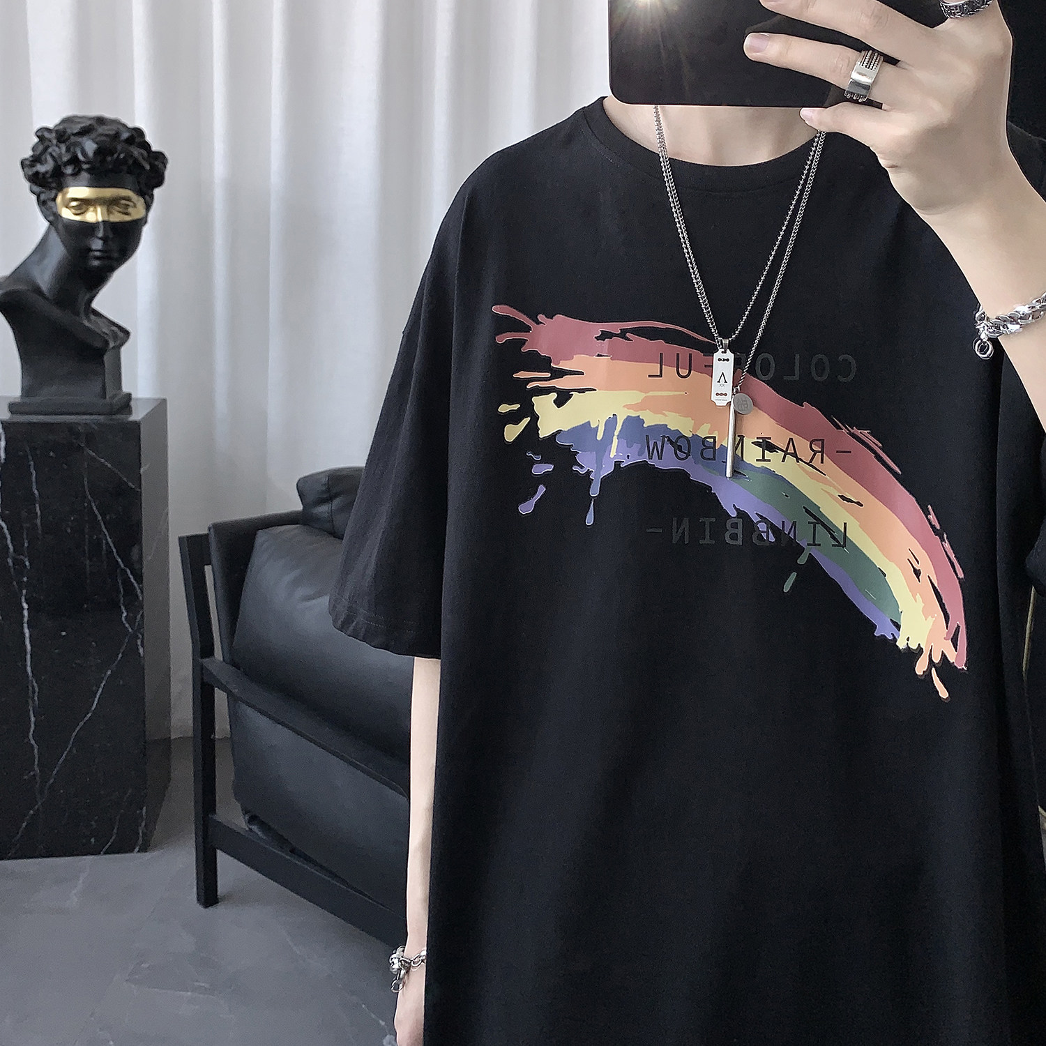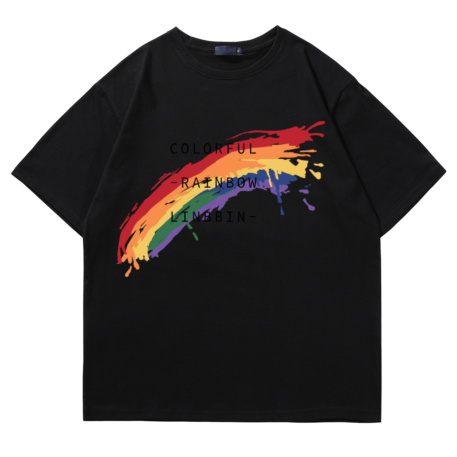 Dark Department Men's Summer Rainbow Stamp Short sleeves T-shirt Male Tide Cards Tide ins Port Wind Half Sleeves Clothes Men