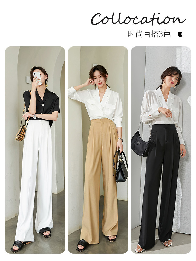 White wide-leg pants women's summer thin models are popular this year with a new high-waist design sense, small people with a drape-like floor-mopping suit pants