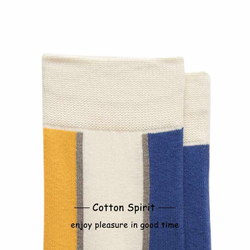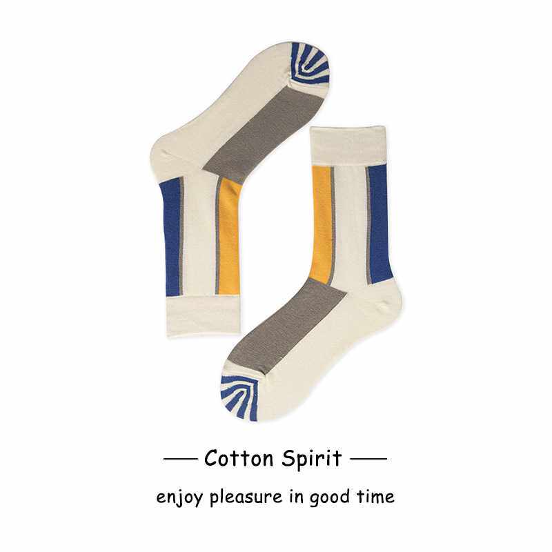 Cotton spirit Unisex cotton personality contrast stitching couple's midstocking simple striped design