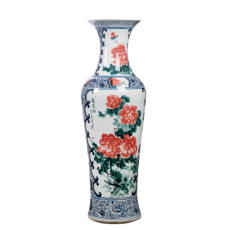 Jingdezhen ceramic ware hand painted green flowers on floor large vase flowers open rich and expensive living room Home New house decoration large swing piece