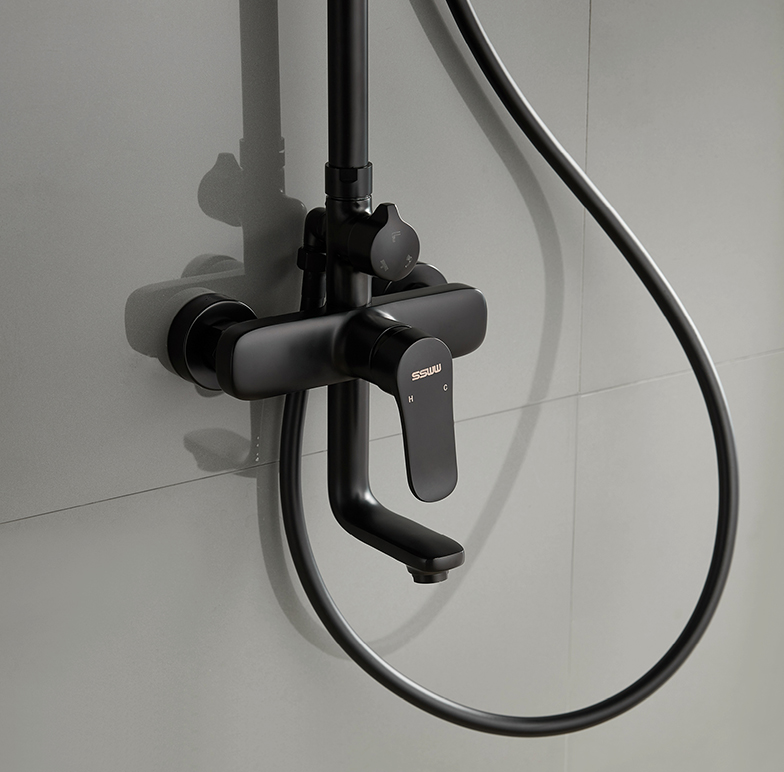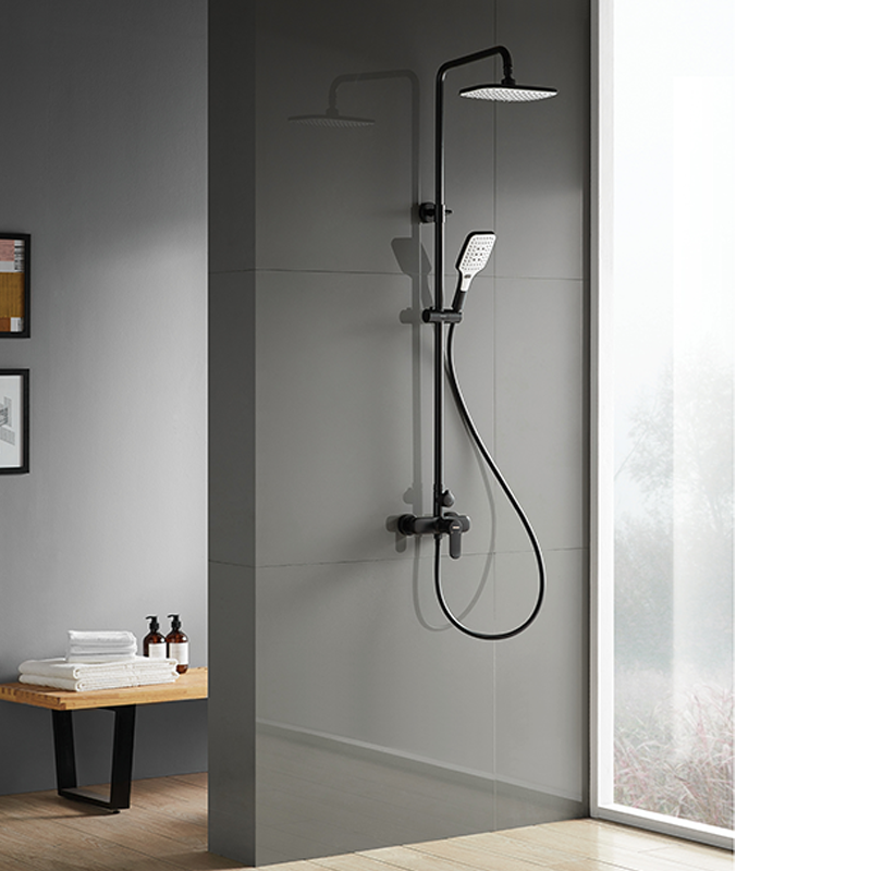 Langwhale Bathroom Matte Black Shower With Shelf With Water Out Shower Shower