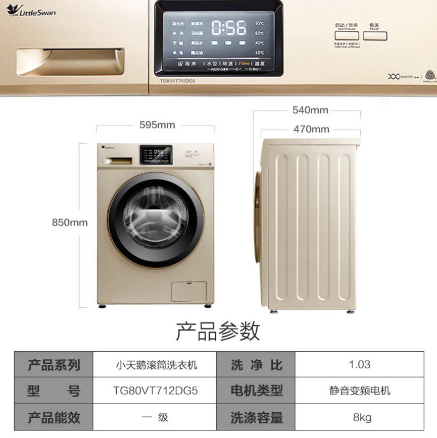 Small Swan 8 kg Ultra 47CM 47CM Frequency Conversion 8kg Home Drum Washing Machine Fully Automatic TG80VT712DG5