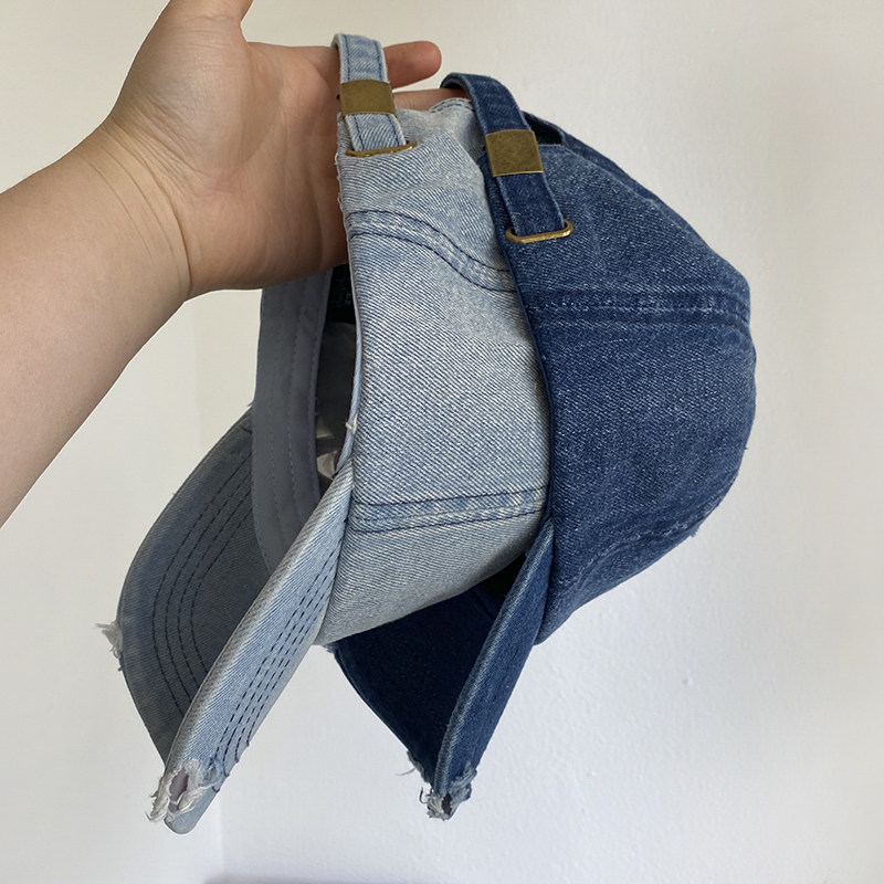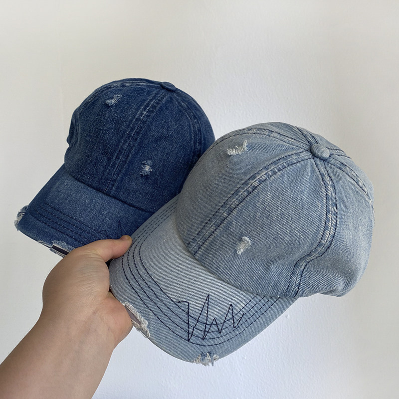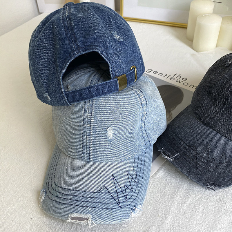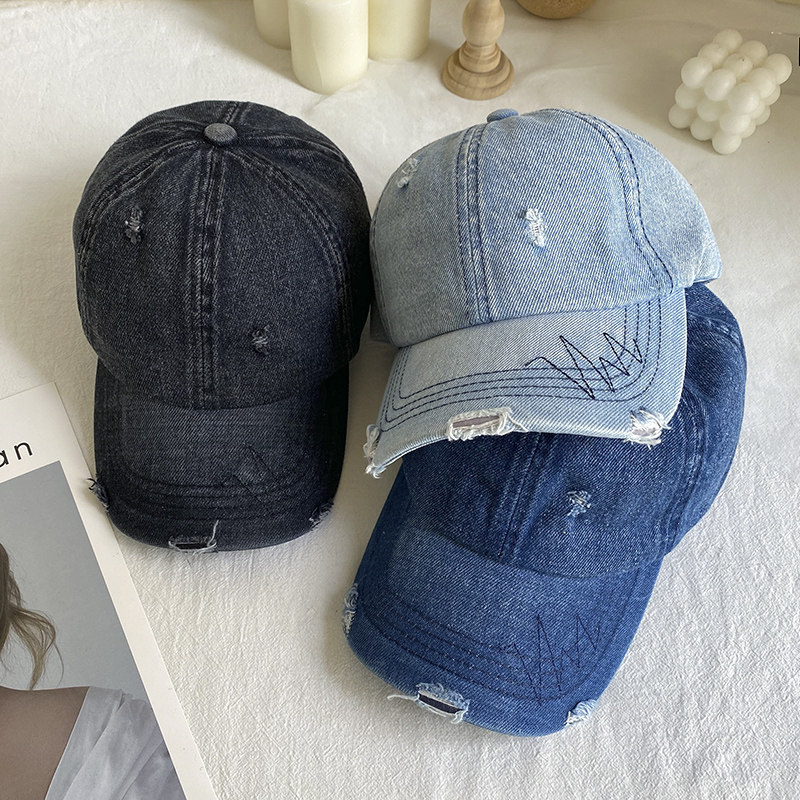 New men's and women's baseball caps Korean version show face small fashion denim ripped caps women's spring and summer sun hats travel
