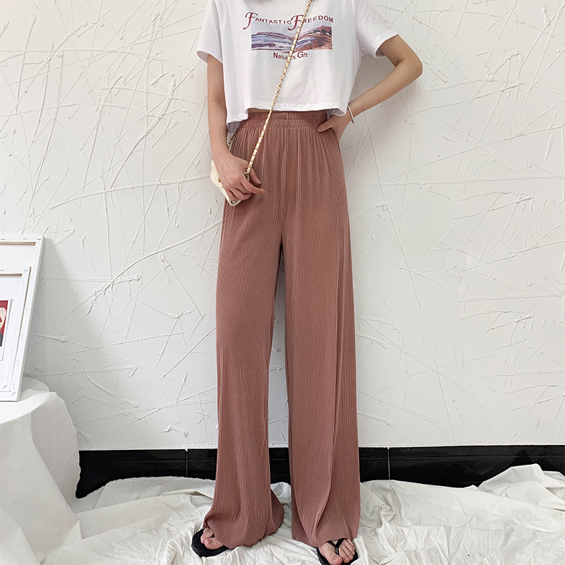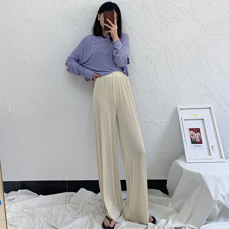 Ice Silk Broadlegged Pants Woman Summer Thin with high waist pitulation Black Loose Tow Ground Casual Pendant Feel Cool And Cool Straight Drum Long Pants
