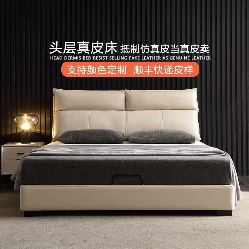 Modern minimalist small apartment Nordic leather bed 18 meters side-by-side double bed storage wedding bed master bedroom leather art bed