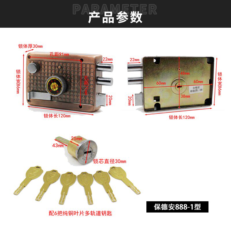 Paodean 888A-1 Type Door Lock Old Fashioned Foundry Feiyun Security Door Lock External Cross Flower Lock Core Triple Tongue Sleeve Lock-Taobao