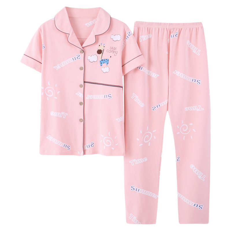 North Pole velvet pajamas for women's summer cotton short sleeve trousers Korean edition cardigan lovely spring and autumn thin new home suit