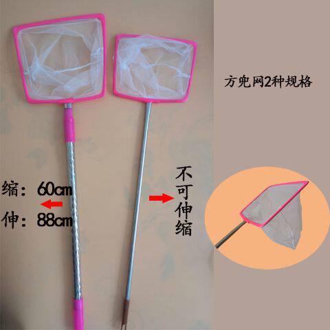 3 small fishing nets, 3 bags of fish food, 3 medium fishing nets, 3 bags of fish food, 2 extra large fishing nets, 3 bags of fish food, 2 square nets (non-retractable), 1 telescopic net