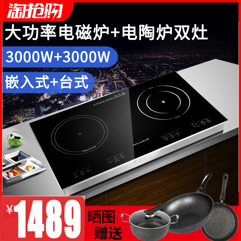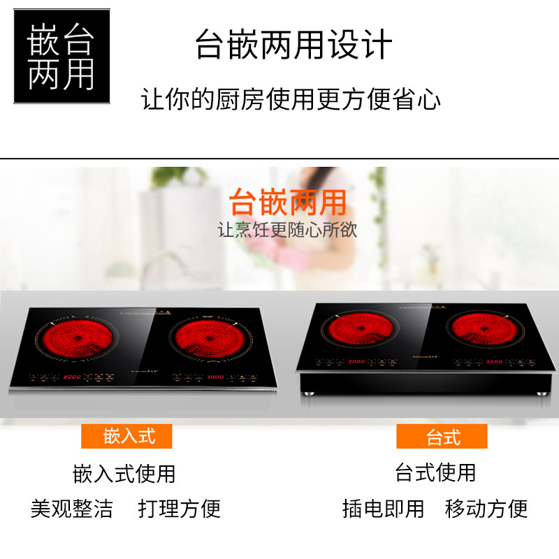 Golden Nine Yuda High Power Induction Cooktop Embedded Home Exploits Black Crystal Furnace Double Mouth Gas Stove Head Desktop Light Wave Furnace Inlays