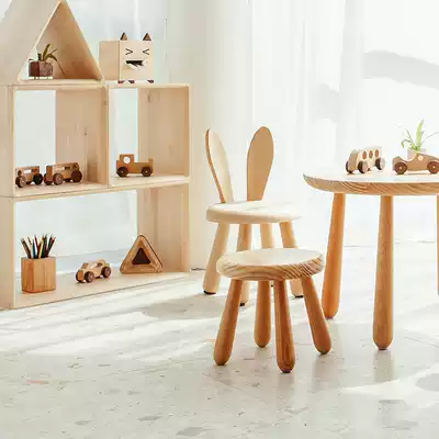 Small round stool (New Zealand pine Aksu water paint) rabbit stool (New Zealand pine wood Aksu water paint) rabbit stool (Canadian Maple Aksu water paint)