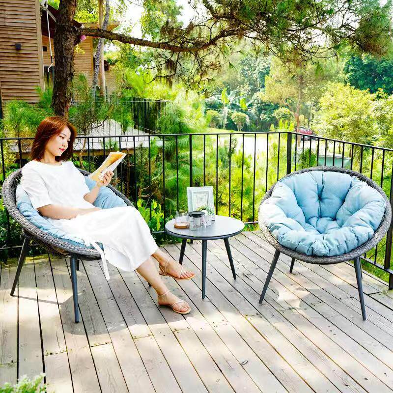 Balcony small table and chairs Three sets Nordic minimalist modern net red rattan chair tea table single balcony bamboo rattan chair leaning back chair