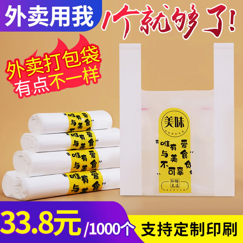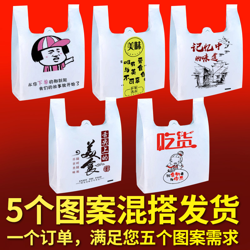 Disposable takeaway packing bag white shopping convenient plastic bag wholesale food bag commercial handy strap customization