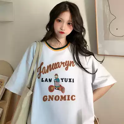 Net red Hyuna Hong Kong style fragrant taro purple loose top clothes summer short-sleeved T-shirt female ins super fire half-sleeved T-shirt tide