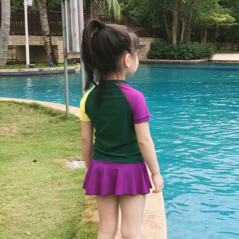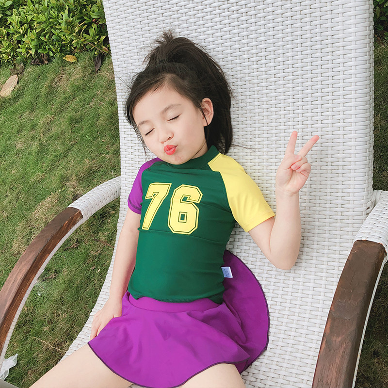 Children's swimsuit Girls and girls Baby long sleeve one-piece sunscreen Middle and small children baby one-piece students shake the tide of net red