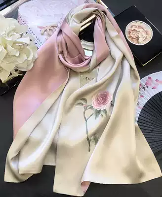 Heart naked pink hand embroidered camellia silk scarf female Su embroidered extended shawl mother mother gift