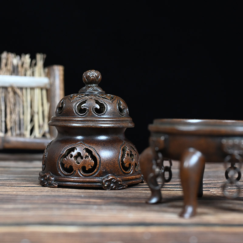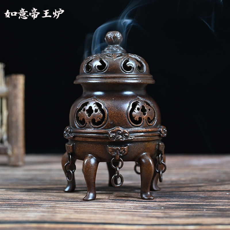 Ruyi Emperor Furnace Antique Xuande Furnace Modern Chinese Zen Furnace Auspicious Cloud Auspicious Copper Ring Incense Furnace Seal Incense Furnace Copper Furnace